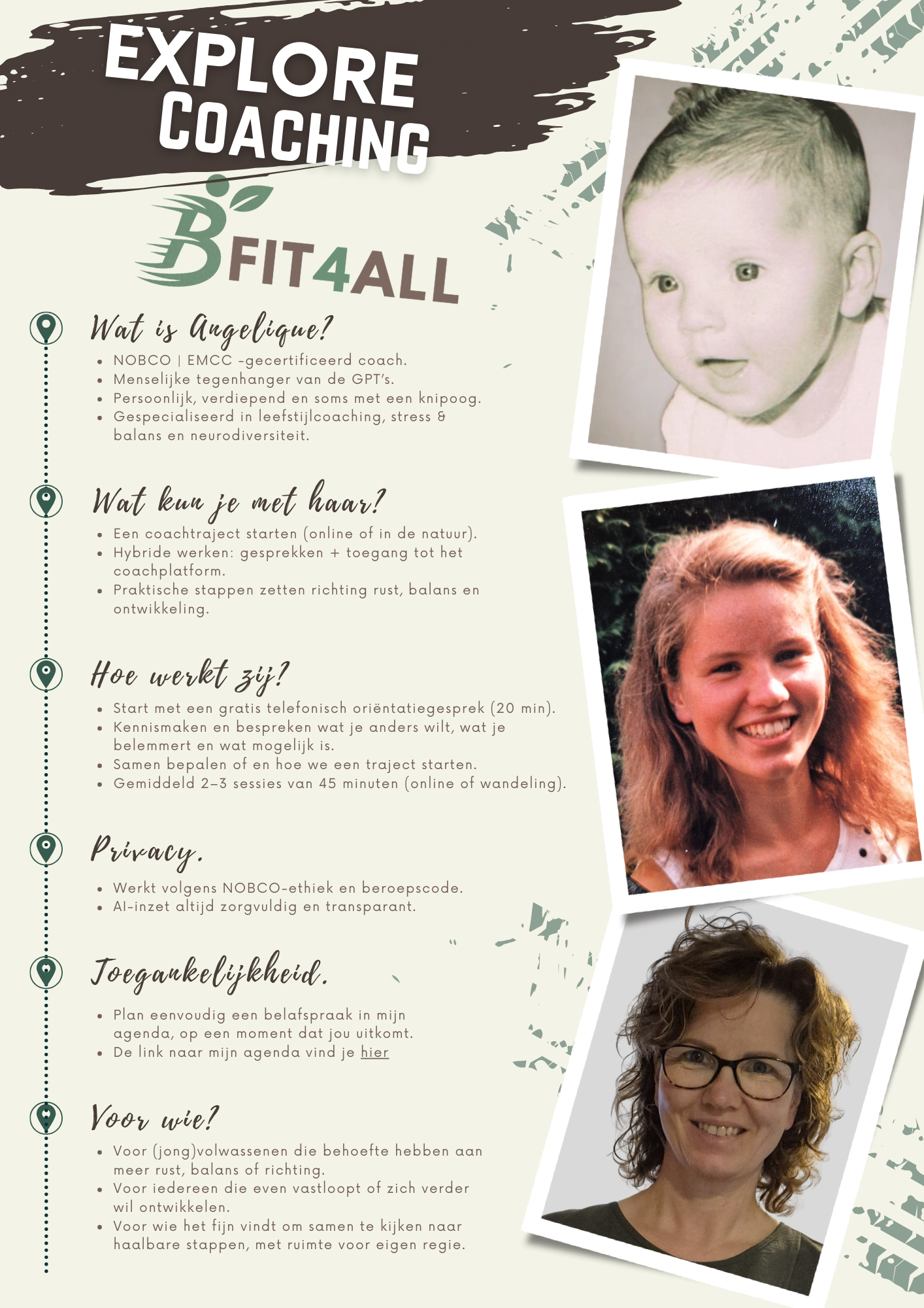 Ik ben Angelique. Coach voor (jong)volwassenen die zoeken naar rust, richting en balans. Vanuit mijn ervaring in leefstijlcoaching en mijn interesse in neurodiversiteit help ik mensen weer grip te krijgen op wat belangrijk is.